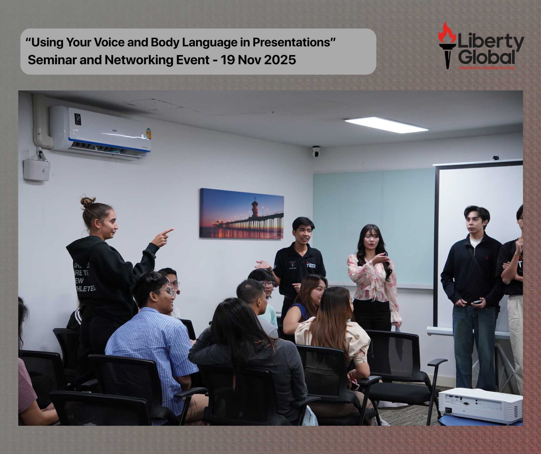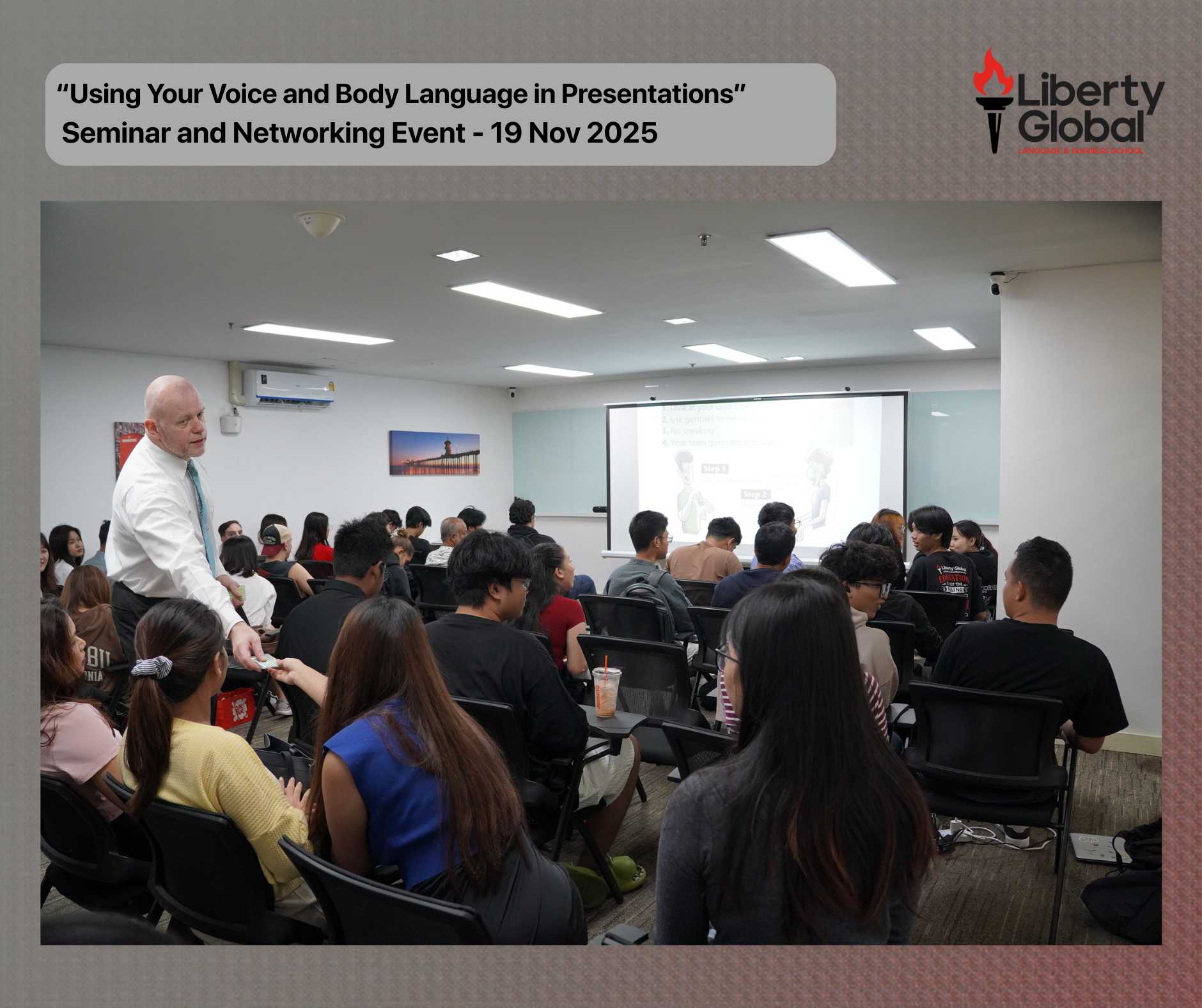 Liberty Global School recently hosted an interactive seminar titled “How to Use Your Voice and Gestures in Presentations,” delivered by Mr. Gary Benn. The session introduced students to practical techniques for improving vocal expression, body language, and overall presentation confidence. These insights are designed to help learners communicate more clearly and make a stronger impact in academic and professional settings.